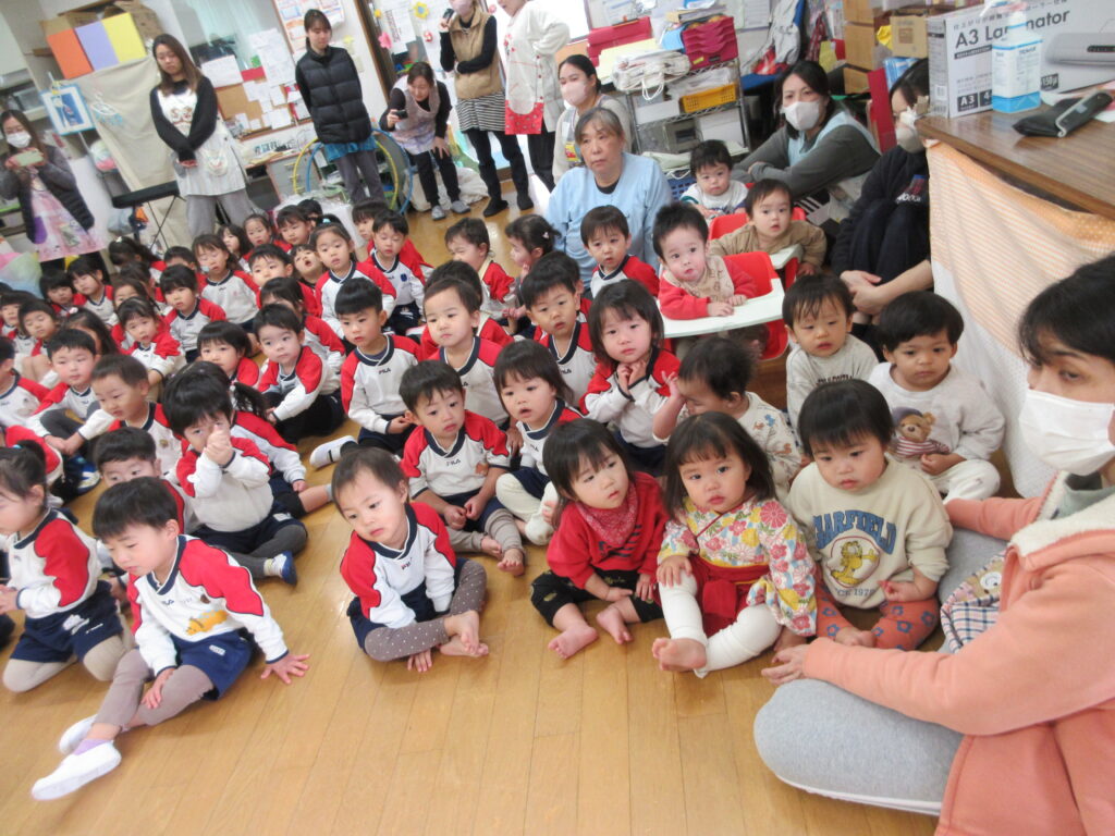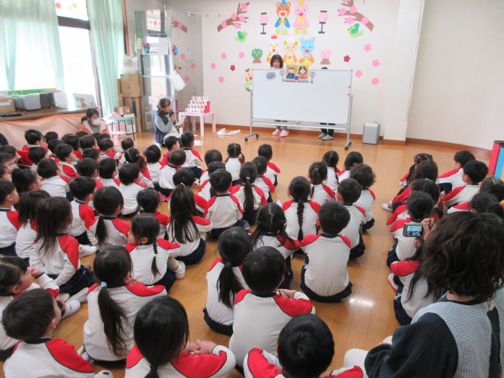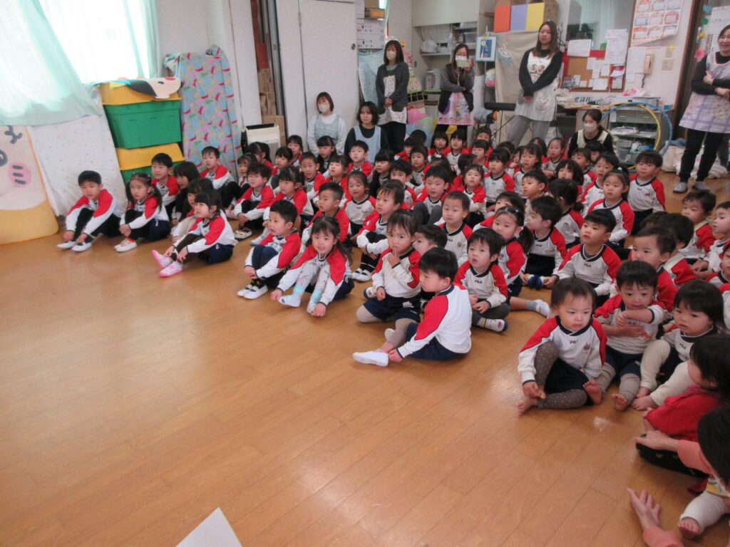 今日は「ひなまつりかい」がありました❤全園児が集まりパネルシアター・歌・ゲームを楽しみました🎵
