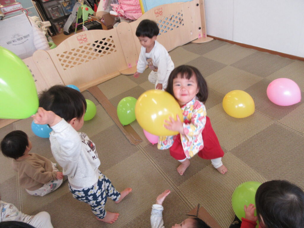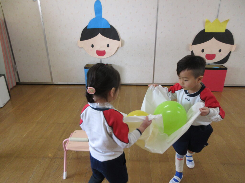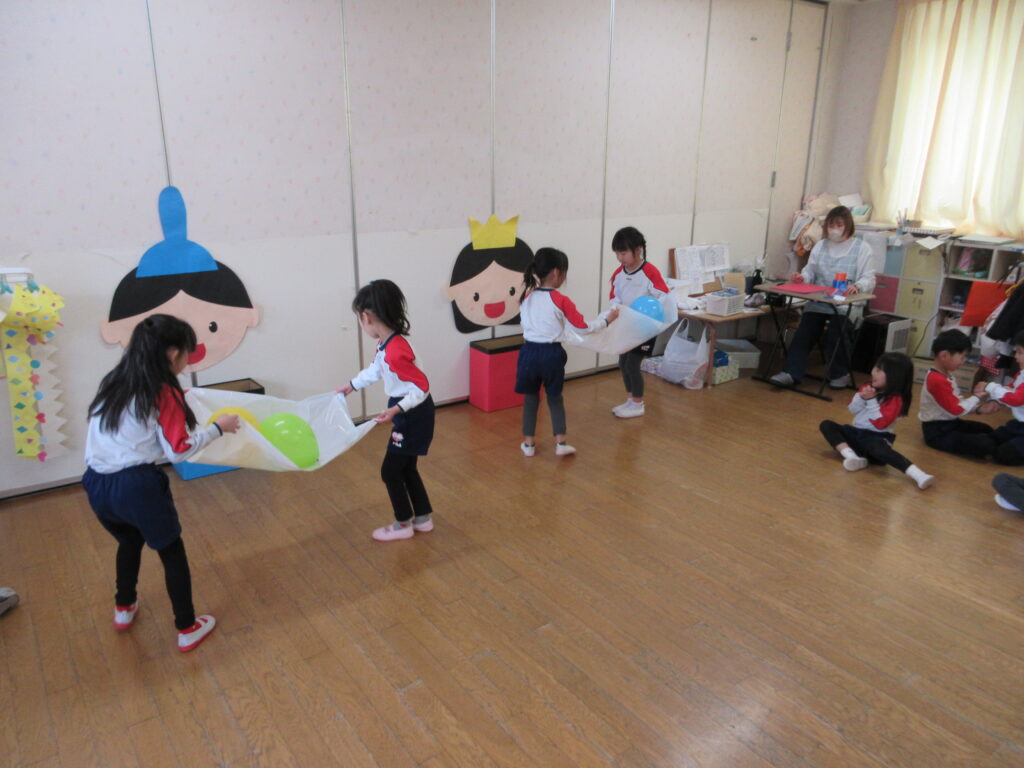 ひなあられ運び✨風船をひなあられに見立てお内裏様とお雛様に食べさせてあげました🎵