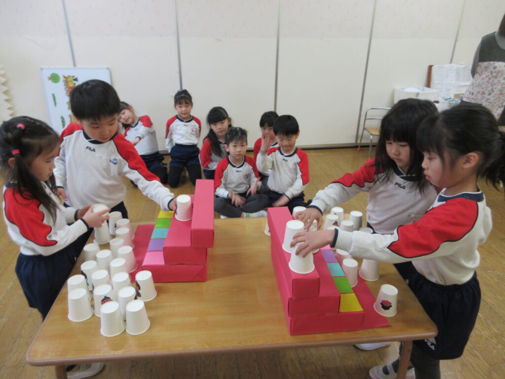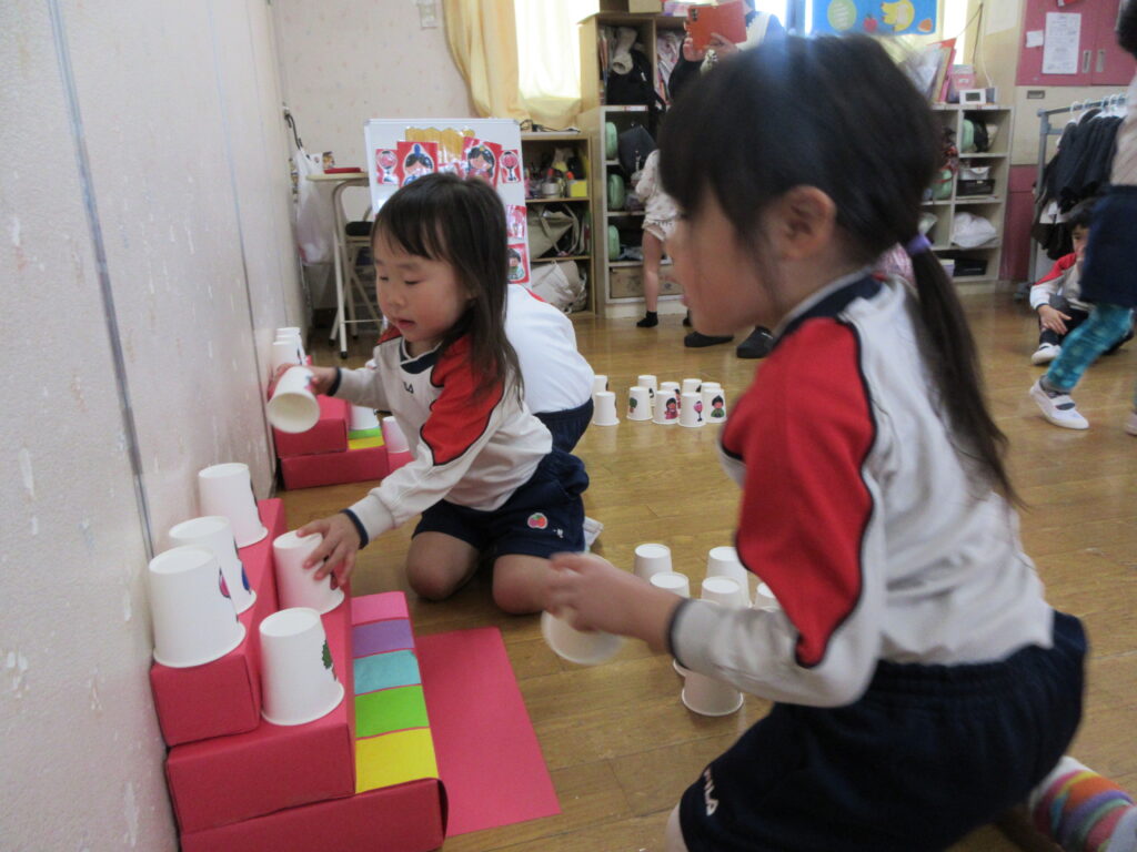 ひな壇合わせ😊見本を見ながら同じ場所に置いてみよう‼出来るかな⁉よ~く見てね♬