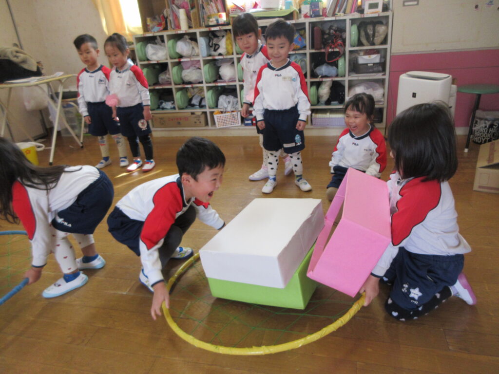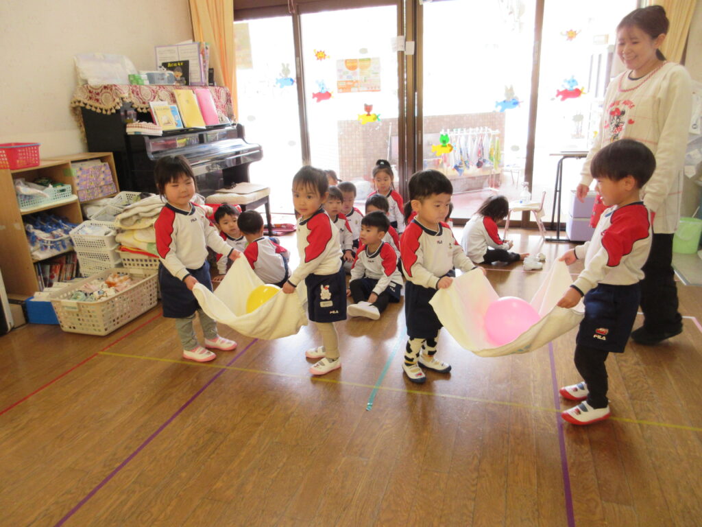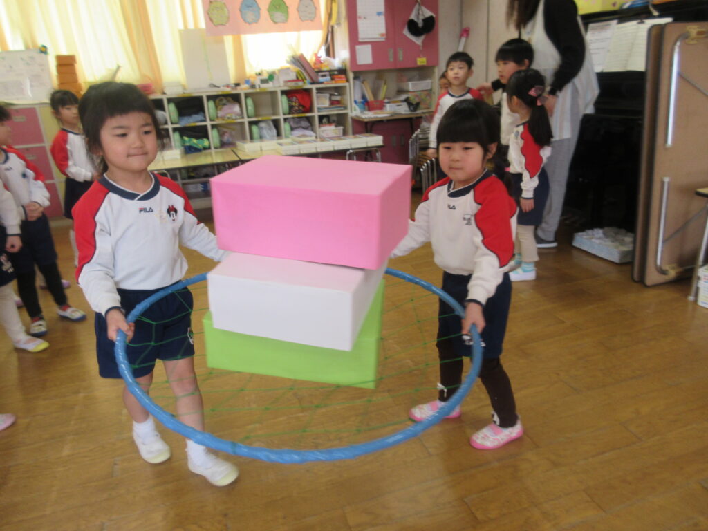 ひしもち運び🎵お友達と2人で力を合わせて菱餅を運ぶよ~‼息を合わせてね~‼